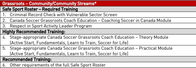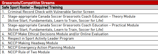 Canada Soccer Coach Education Minimum Standards- See link or chart bellow for all coaching course requirements.